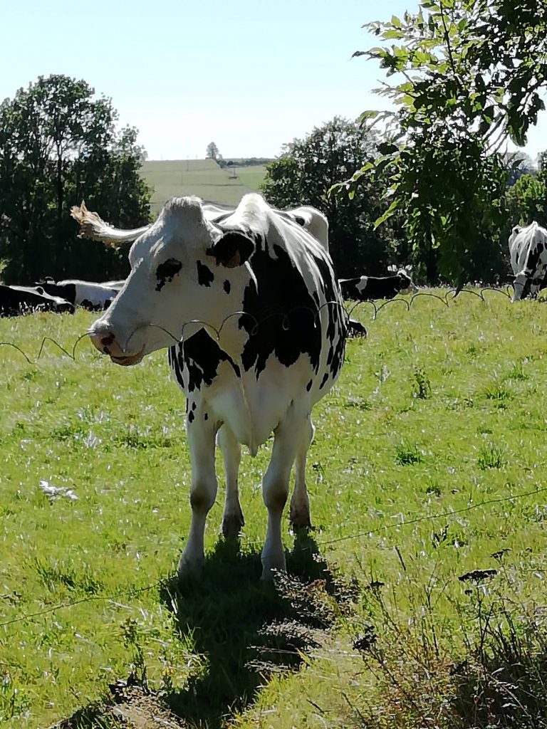 Eine ganz untypische Kuh für das Cantal. Wir versuchen, auch noch ein Foto von den „richtigen“ Kühen zu machen.